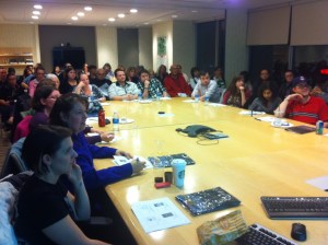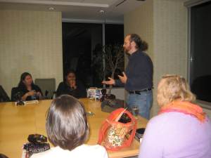 Stuart also gave a reading. He chose a short story he wrote entitled “The Princess and the Pervert,” a re-telling of “The Princess and the Frog.” It was dark and twisted; I was squirming in my seat, and almost gasped out loud at the ending. You can read the story here and it’s a fantastic, well-written, creepy-as-hell piece. But you definitely missed out, not hearing Stuart read it live. He’s a fantastic performer; his reading brought his characters to life. Some parts were hilarious, other parts just really, really freaked me out. Then he told a few of us later on about a short, rhyming story he wrote for his nephew Logan (after whom Stuart’s series character Logan McRae was named). It was about a skeleton whose mother gave him a fuzzy pink sweater. Sweet, funny story, completely different from “Princess and Pervert,” and I at least can imagine a Tim Burton short based on it.