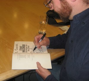 That’s another thing about Stuart MacBride that I love: he personalizes the books he signs, or at least writes something different in each one. One of the women had a sketch of a dead teddy bear, and another had a drawing of a skull with a princess crown. Another woman had a copy signed for a friend who couldn’t make it because of work. Stuart wrote “Sorry excuse for missing this!” then said, “We had cake!”