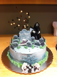 Speaking of cake, Harper Collins served this fantastic treat. It was delicious, but more importantly, I love the Death figure! Isn’t it cute? Stuart noticed the Death figure has glasses and a beard and called the designer cheeky.