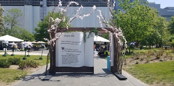 The children’s area was a beautifully whimsical space called The Fantastical Book Garden. You entered through a storybook and exited through a beautiful illustration. And inside are book flowers. I didn’t look closely at all of them, but one flower featured Chris Hadfield’s An Astronaut’s Guide to Life on Earth. Kudos to whomever on the festival team designed this space. It felt like stepping into another world, and I especially love how it’s framed as a Fantastical Book Garden rather than just “The Kids Zone,” or some such. As an adult with no kids, I likely would’ve walked right past a Kids Zone, but this design invited people of all ages to experience the magic for ourselves.