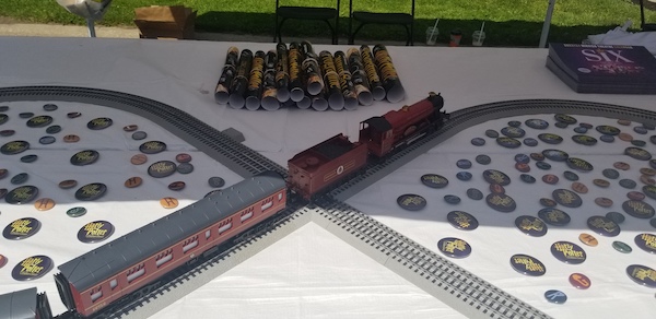 I also always enjoy the Mirvish booth, and this year had a definite Harry Potter theme. There was a figure-eight railroad with the Hogwarts Express, buttons for each of the houses, and a poster of Harry Potter and the Cursed Child signed by the cast!
