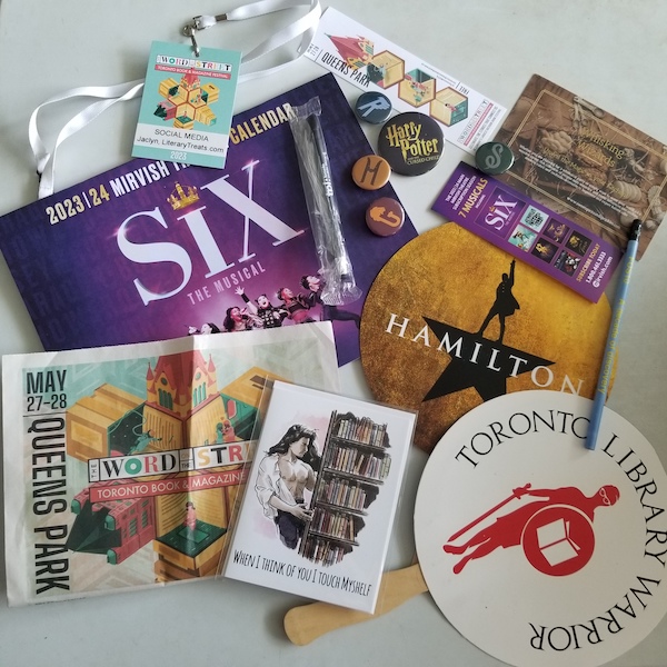Lots of bookish and theatre swag at the festival this year. I was especially grateful for the cardboard fans from Mirvish and the Toronto Public Library union. Plus, check out this awesome Fabio card from Happily Ever After Books!