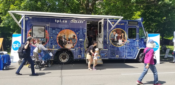 Another bookish treat was the Toronto Public Library Bookmobile. I didn’t go in, because my backpack was pretty bulky with books at this point and the bookmobile didn’t look very spacious. But bookmobiles make me think of small towns and children’s books, and it was a nice cozy touch in the heart of the city. I also won a pen at their spin-the-wheel game, which is perfect, because I go through pens pretty quickly.