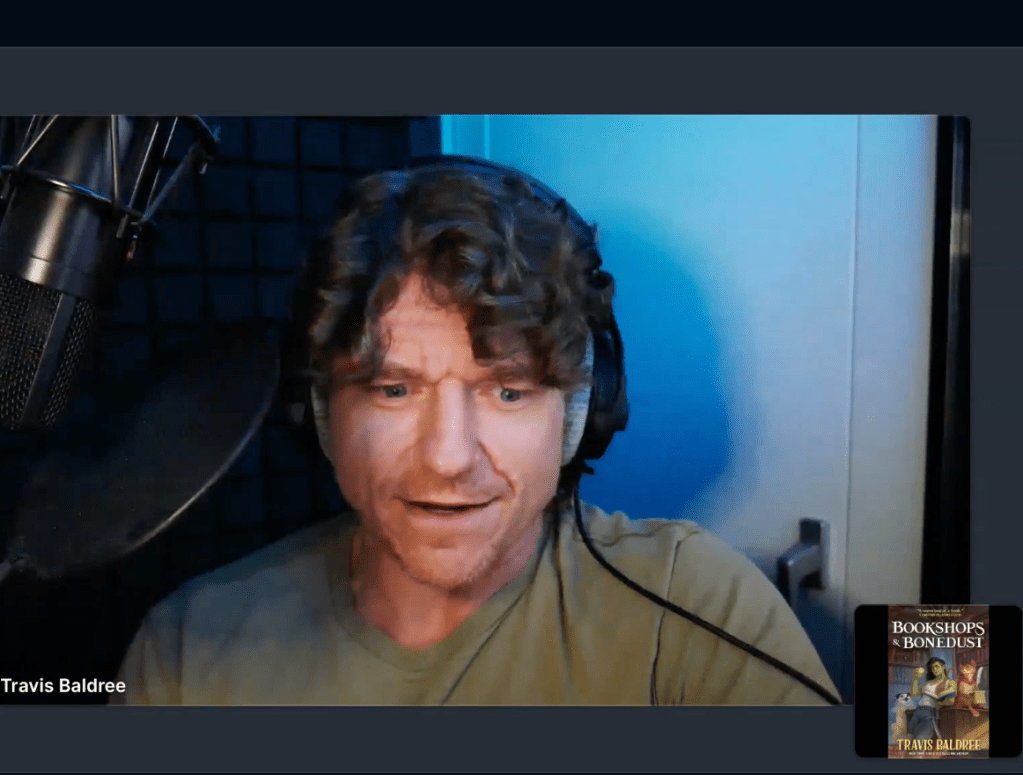 The second I saw that Travis Baldree was going to be at Raincoast Books’ TBR Preview for Fall, I immediately clicked on the link to register. His first book, Legends and Lattes, has been on my TBR ever since I first heard it described as a “cozy fantasy,” and I was eager for the chance to hear the author speak about his upcoming book, Bookshops and Bonedust.